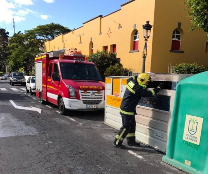 Una vez más han tenido que actuar los bomberos del Parque de La Laguna para evitar que un contenedor de reciclaje de papel junto al Mercado Municipal, y evitar de ese modo que se extendiera a otros contenedores y vehícus estacionados en la zona.