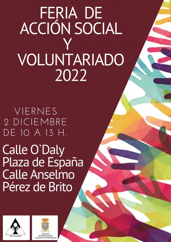 La calle O´Daly, Plaza de España y la calle Anselmo Pérez de Brito de Santa Cruz de La Palma acogerán el próximo viernes 2 de diciembre desde las 10:00 hasta las 13:00 horas la XXIV edición de la Feria de Acción Social y Voluntariado.