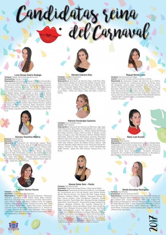 Diecisiete candidatas aspiran a convertirse en Reinas del Carnaval de Los Llanos de Aridane