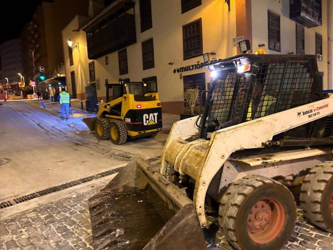 Tras la celebración del Gran Desembarco de Indianos e Indianas este lunes de carnaval, el Ayuntamiento de Santa Cruz de La Palma puso en marcha el dispositivo de limpieza en la madrugada del martes, 21 de febrero.