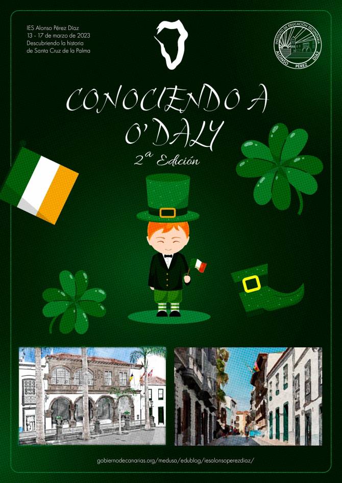 El IES Alonso Pérez Díaz celebra la 2ª edición del proyecto "Conociendo a O´Daly" en colaboración con la Concejalía de Cultura del Ayuntamiento de Santa Cruz de La Palma y de la "Asociación Cultural Amigos de Irlanda-La Palma". Las actividades se desarrollarán durante la semana del 13 al 17 de marzo y coincidirán con los numerosos actos del "St. Patrick´s Day".