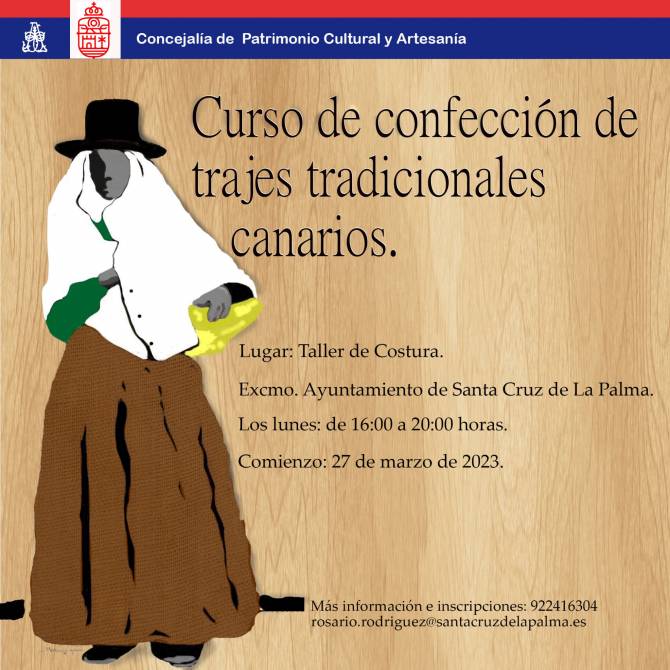 La concejalía de Artesanía del ayuntamiento de Santa Cruz de La Palma que dirige Manuel Garrido organiza un curso de diseño y confección de trajes tradicionales canarios, con la colaboración de la consejería de Patrimonio Cultural del Cabildo insular.