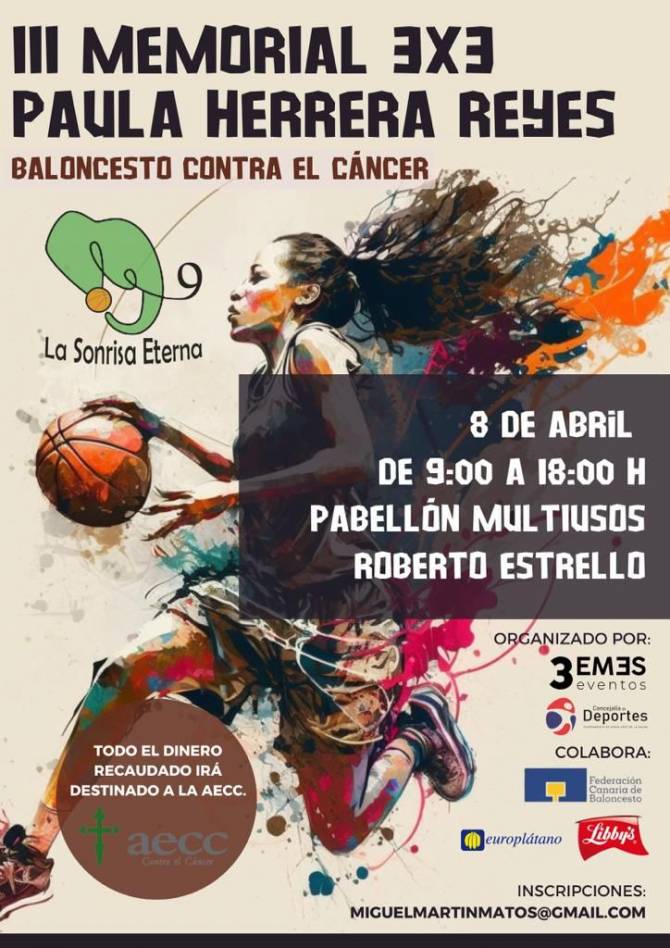 El Ayuntamiento de Santa Cruz de La Palma, a través de la concejalía de Deportes que dirige Yurena Pérez, organiza la tercera edición del torneo benéfico de baloncesto 'Memorial Paula Herrera Reyes: la sonrisa eterna', junto a 3 Emes Eventos y con la colaboración de la Federación Canaria de Baloncesto.