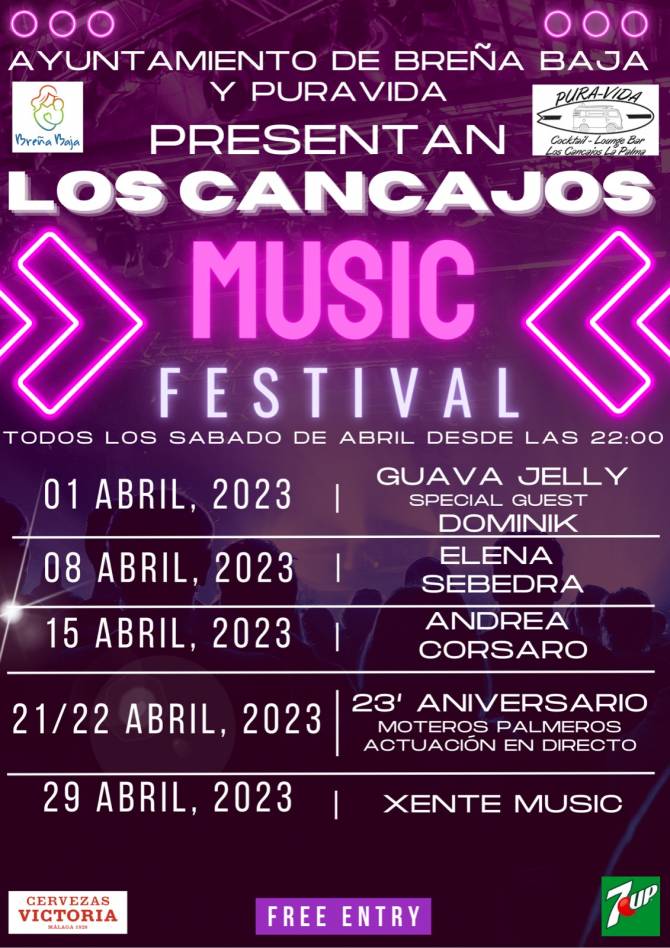 Todos los sábados del mes de abril desde las 22 hs el Lounge Bar “Pura Vida” organiza “Los Cancajos Music Festival” en su local de CentroCancajos, con la colaboración del Ayuntamiento de Breña Baja y otras entidades. Entrada Libre.