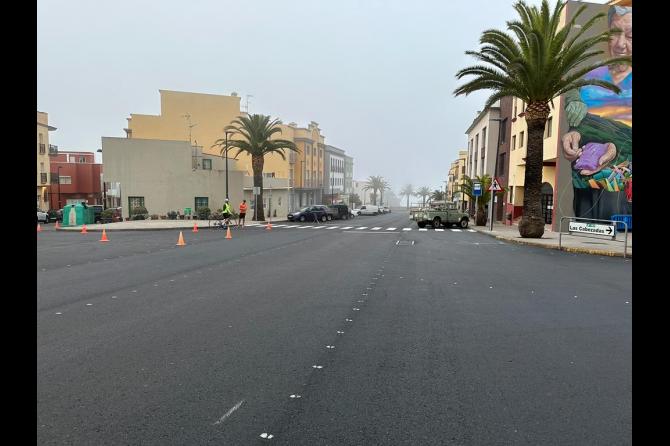 En estos momentos se están realizando los trabajos de señalización horizontal por parte del equipo de Señalización y Seguridad Vial de la Consejería de Infraestructuras.