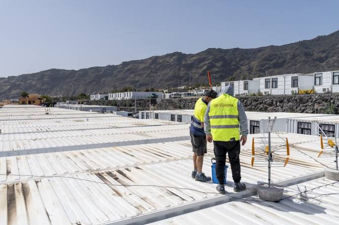 La Consejería mantiene una supervisión frecuente del estado de las viviendas y como resultado de estas revisiones, técnicos del propio Instituto Canario de la Vivienda (ICAVI) detectaron machas superficiales de óxido en las cubiertas de varias viviendas prefabricadas ubicadas en Los Llanos de Aridane, no superando el 5% de las viviendas afectadas. Como ha quedado demostrado con las primeras intervenciones del equipo de mantenimiento de la empresa que suministró estas viviendas, estas manchas de óxido no causan ninguna afección a la estructura de la vivienda y el color terroso que se observa en las cubiertas de estas casas se debe a los últimos episodios de polvo en suspensión y calima que se han experimentado días atrás en La Palma.