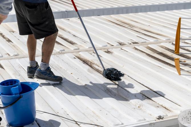 Ante esta situación, el personal de la empresa adjudicataria de estas viviendas modulares, está procediendo a la limpieza con agua del polvo acumulado en los techos de las casas donde se han localizado estas manchas para limpiar el óxido y posterior pintado con una pintura especial en espray para estructuras metálicas al aire libre, como las que se usan en los barcos. Estos trabajos y la supervisión de los técnicos del ICAVI descartan rotundamente que las manchas que se aprecian en los techos de estas casas correspondan con óxido, sólo es polvo y suciedad, que se ha visto incrementado por los últimos episodios de calima que ha sufrido La Palma, manchas que desaparecen con una simple limpieza con agua.