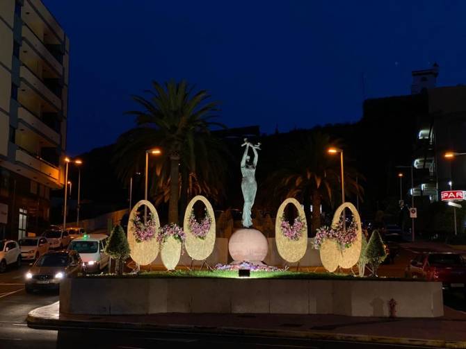 Hay que recordar que esta acción se lleva realizando desde el año 2021, de la mano del artista Carlos Curbelo y en colaboración con las distintas floristerías del municipio, que ayudan en las labores de preparación, y cuyas esculturas se distribuirán en cuatro localizaciones: La Plaza de España, el balcón del Ayuntamiento, las letras de Los Llanos de Aridane y la estatua del Guanche mirando al Sol.