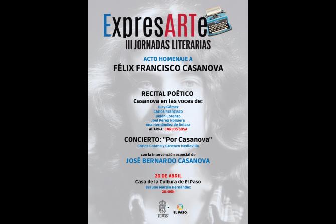 En este homenaje además se desvelará el tercer número de la revista con nombre homónimo a estas jornadas que está dedicada a la memoria de Félix. También disfrutaremos de un recital poético a cargo de varios escritores de nuestra tierra con el acompañamiento musical del arpa a cargo de Carlos Sosa y para concluir, Carlos Catana y Gustavo Mediavilla nos deleitarán con el concierto “Por Casanova”, poemas musicados por el músico y vocalista Carlos Catana que lleva años investigando la obra de Casanova y que ha trabajado en varias versiones los poemas de este querido y talentoso autor.
