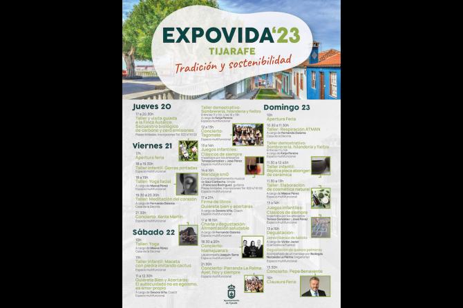 Del 20 al 23 de abril tendrá lugar en Tijarafe la XVII edición de Expovida que, bajo el lema “Tradición y sostenibilidad”, acogerá múltiples talleres, charlas, conciertos, degustaciones y maridajes.