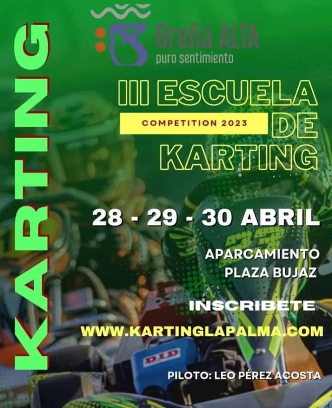 El Ayuntamiento de Breña Alta abre las inscripciones para la Escuela de Karting, que celebrará su tercera edición consecutiva en el municipio. En esta ocasión, la formación está dirigida a jóvenes de entre 10 y 17 años y la celebración tendrá lugar en el aparcamiento de la Plaza Bujaz los días 28, 29 y 30 de abril.