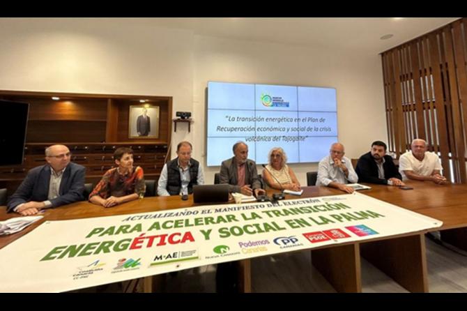 En el 2015 la Plataforma por un Nuevo Modelo Energético (Px1NME) inició la ruta por la soberanía energética de la isla, conscientes de que si tenemos en el territorio insular los recursos energéticos renovables que van a sustituir el petróleo, el aprovechamiento y desarrollo de esos recursos tiene que realizarse desde y para La Palma. Es decir, la transición energética tiene que ser una oportunidad para abordar la consecución de dos objetivos estratégicos vitales para el futuro de la isla, la diversificación y fortalecimiento de la economía insular que lleva implícito su descarbonización y el de la lucha contra el cambio climático para abordar la situación de emergencia climática declarada por el Cabildo en febrero de 2020.