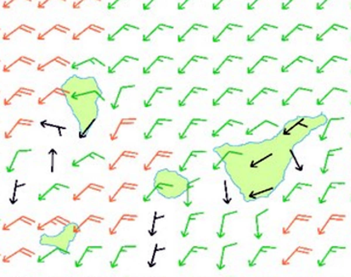 El viento soplará del Nordeste en general y de componente este en medianías. Variable flojo con brisas en costa suroeste.
