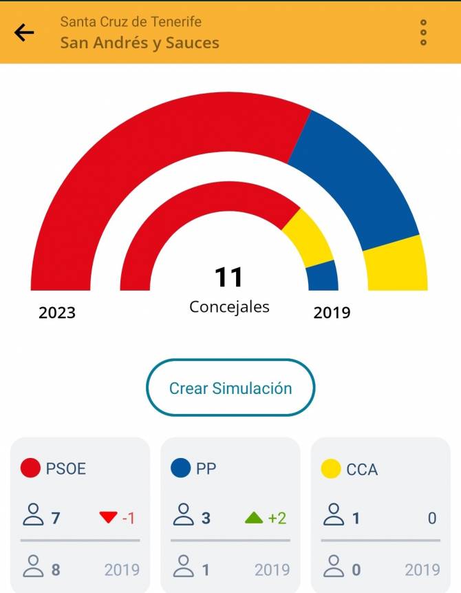 Israel Martín Consigue subir de 1 a 3 concejales para el PP, mientras que Coalición Canaria baja 1 de los 2 que había conseguido en las anteriores elecciones.