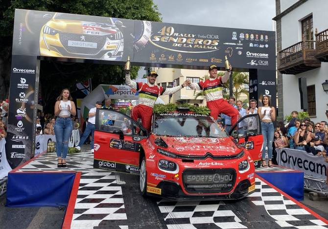Controlando su ventaja y superando la avería de un sensor del turbo de su Citroën C3 Rally2, Miguel Suárez y Eduardo González han vuelto a lograr la victoria en el Rally Senderos de La Palma. El palmero y el grancanario dominaron esta edición con mano de hierro, o lo que es lo mismo, desde el primero al último tramo cronometrado.