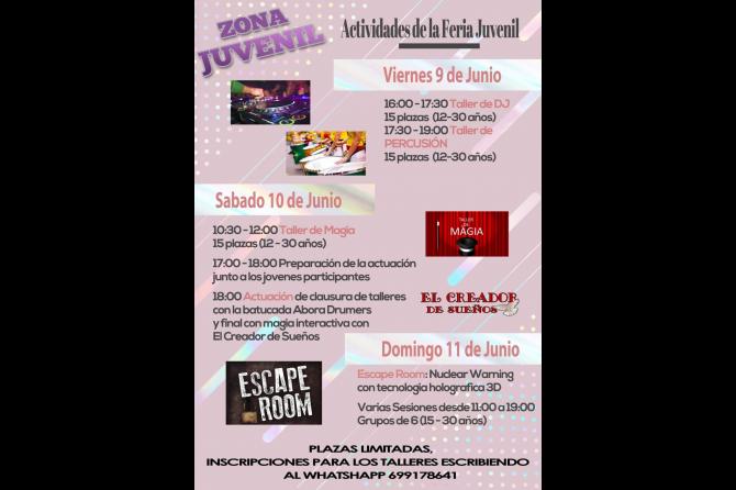 Las actividades comenzarán el viernes 9 de junio con la celebración de los talleres de Dj y de percusión, con 15 plazas disponibles para cada una de las actividades. Tendrán continuidad el sábado 10, a partir de las 10:30 horas, con el taller de magia, para seguir en horario de tarde con actuaciones de los participantes en los talleres y la batucada Abora Drumers