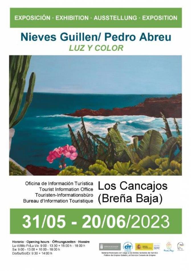 Del 31 de mayo al 20 de junio la Oficina de Información Turística de Los Cancajos acoge la Exposición de pintura al óleo "Luz y Color" de Nieves Guillen y Pedro Abreu en los horarios de apertura de la oficina. Con la colaboración del Ayuntamiento de Breña Baja y el Cit Tedote.