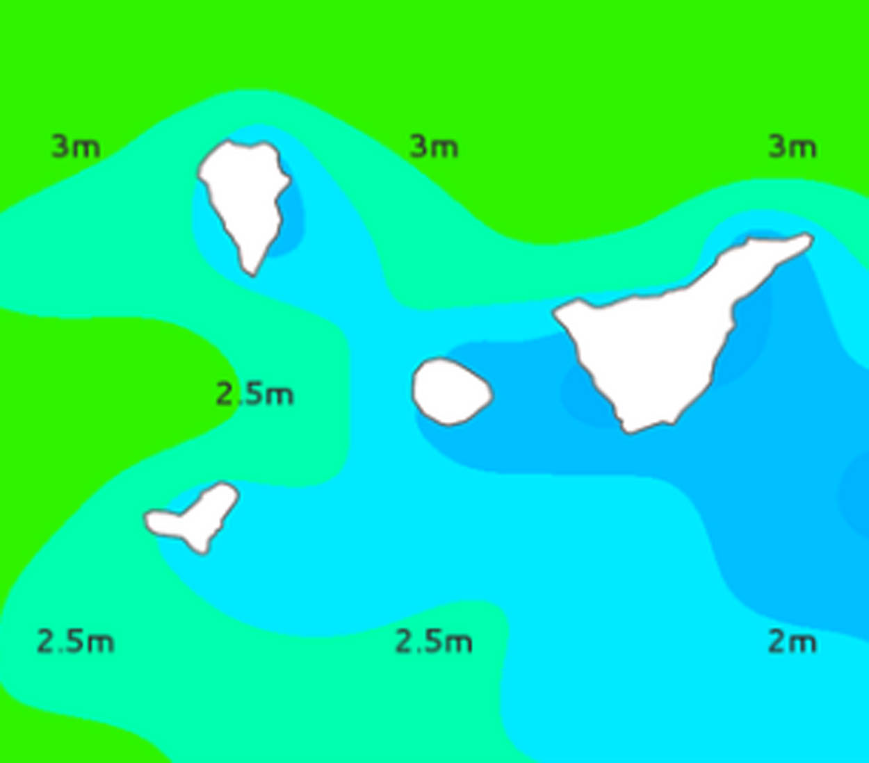 En la cosa Suroeste variable fuerza 1 a 3, rizada o marejadilla, con mar de fondo del Noroeste de 1 a 2 metros, aumentando a 2 o 3 metros.