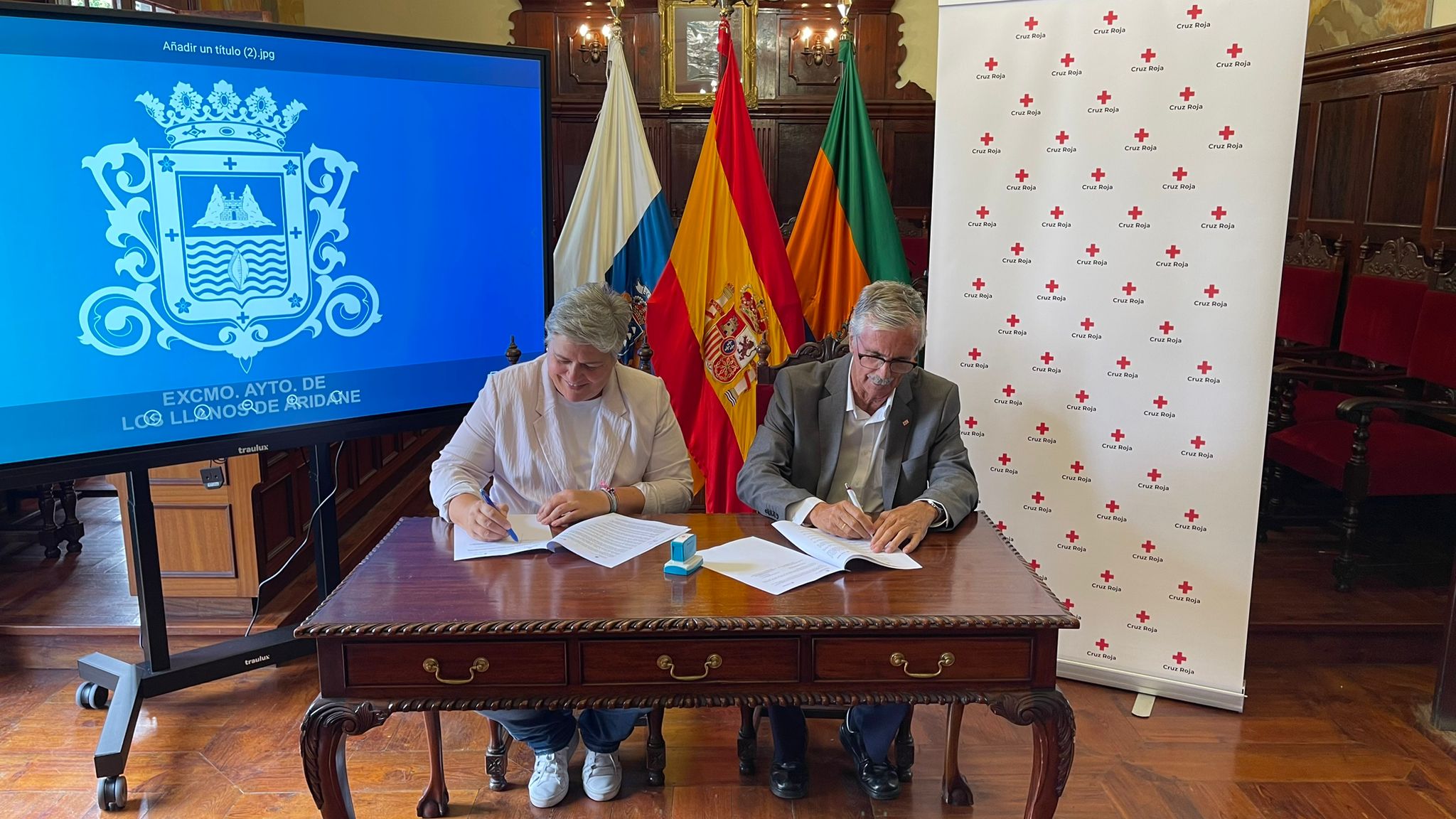 El Ayuntamiento de Los Llanos de Aridane a través de la alcaldesa en funciones, Noelia García Leal, y junto al presidente provincial de Cruz Roja en la provincia de Santa Cruz de Tenerife, Heliodoro González Real, han firmado ayer dos acuerdos con el fin de continuar ofreciendo más calidad de vida a los mayores del municipio.