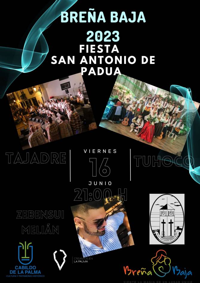 Organizan la Asociación de Vecinos “Antomara” y el Ayuntamiento de Breña Baja por la Fiesta de San Antonio de Padua 2023. Se cuenta con la colaboración del Programa “Creamos en La Palma” del Cabildo Insular de La Palma.