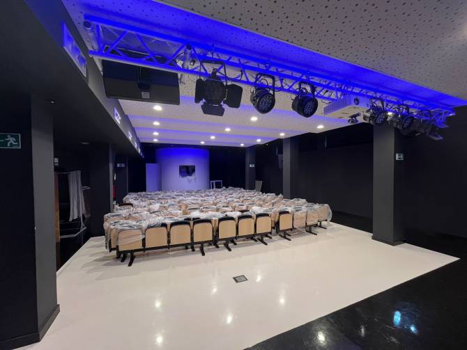 Además, explica que se trata de una reforma integral que se ha acometido en dos fases y que ha contado con un presupuesto de más de 300.000 euros. Concretamente, afirma, “hemos creado un Salón adaptado a las necesidades, insonorizado, con un escenario de 50 metros2, un patio de butacas de 170 metros2 y que alberga 116 buscas, una cabina de control de 10 metros2, un camerino de 18 metros2, doble acceso y cuenta también con diclimatización, entre otros”.