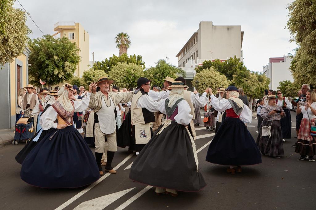 Otra novedad en esta edición es la instalación de casetas de madera en la calle Calvario, donde voluntarios y miembros de asociaciones vecinales repartieron productos típicos de Canarias como chicharrones, pan con chorizo o escacho, entre otros. Unos insumos que tuvieron buena acogida por parte del público asistente, que agotó las existencias a pesar de las previsiones de afluencia realizadas por las autoridades locales.