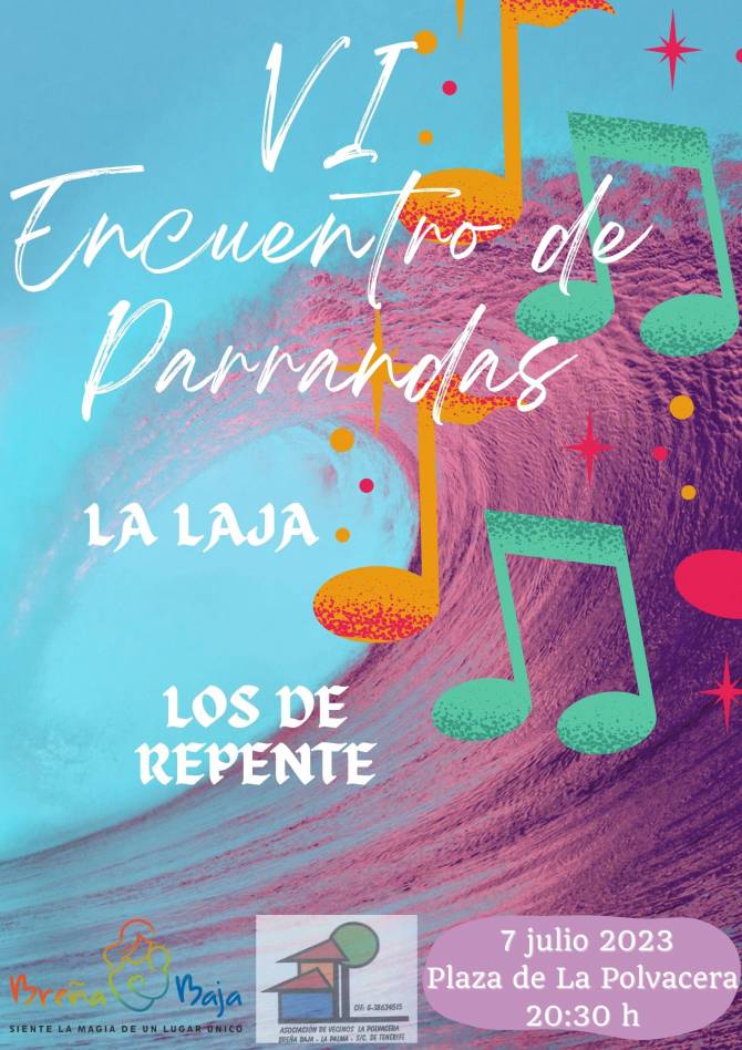 El viernes 7 de julio, 20.30 h, la asociación de vecinos de La Polvacera celebra el sexto “Encuentro de Parrandas”, en el marco de las Fiestas Copatronales de Santiago Apóstol y Santa Ana 2023, conjuntamente con el Ayuntamiento de Breña Baja.