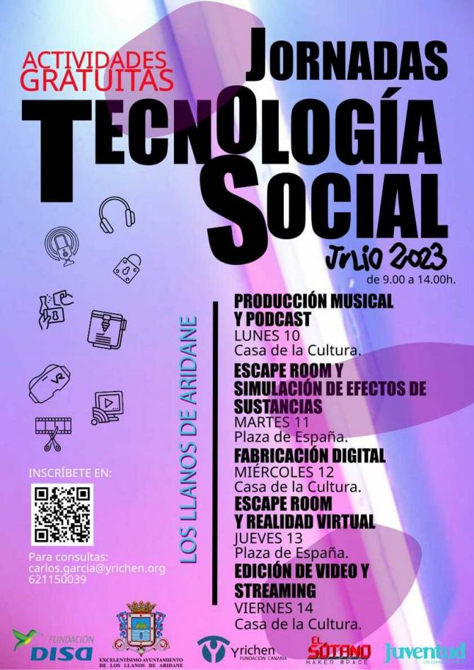 El Ayuntamiento de Los Llanos de Aridane organiza la celebración de unas jornadas de Tecnología Social, dirigidas prioritariamente a la población juvenil, que permitirá dotarlos de conocimientos acerca del uso de las nuevas tecnologías y herramientas digitales.