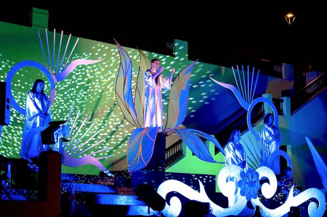 Poco antes, la Iglesia Nueva, acogió la Solemne Función Religiosa en honor a Santiago Apóstol y Novena a Santa Ana, una misa cantada a cargo de la Agrupación Gándara. Tras la Loa, cerrada con un colorido juego de juegos artificiales sobre San José, llegó el momento para el humor a cargo de la cómica Omayra Cazorla, sobre una repleta Plaza de las Madres.
