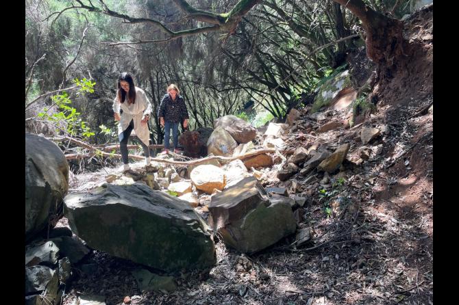 Desde su apertura, se han constatado hasta cinco grandes derrumbes de riscos, aunque este proceso parece haberse intensificado en el último año debido, entre otras razones, a la profunda sequía que afecta a toda la Isla, incluidos estos parajes que antaño contaban con una intensa humedad ambiental, que está ocasionando una mayor fragilidad del terreno que se deshace y cuartea con mucha más facilidad ante la labor constante y callada de las raíces de la vegetación.