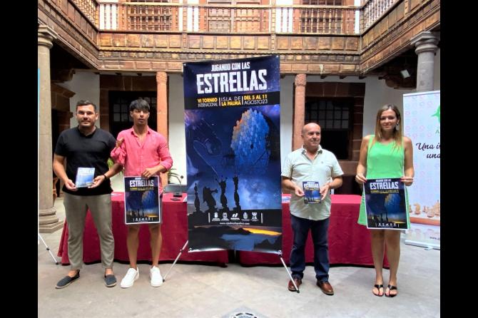 El Cabildo de La Palma, a través de la Consejería de Deportes y la empresa pública Sodepal, colabora en la celebración de la sexta edición del Torneo Internacional de Ajedrez ‘Jugando con las Estrellas’, que se desarrollará entre el 5 y el 11 de agosto y que ya cuenta con más de 100 participantes de 12 nacionalidades, de los que 26 son titulados y al menos 70 de fuera de la Isla.