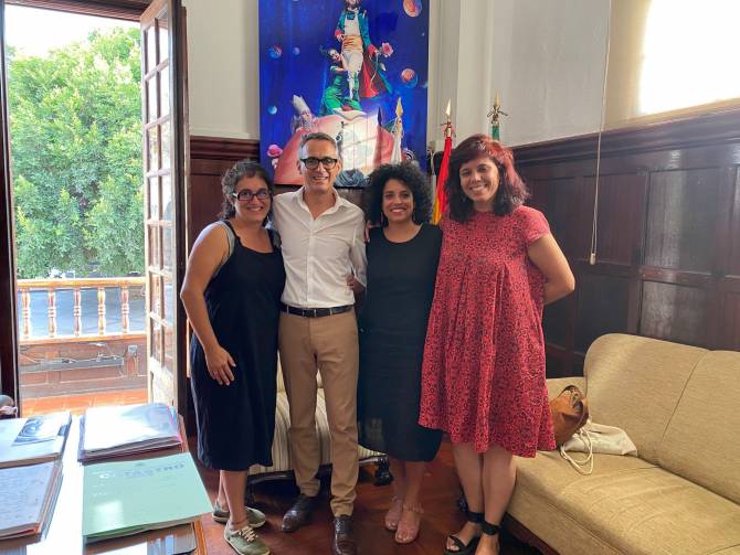 El alcalde de Los Llanos de Aridane, Javier Llamas, se reúne con las socias de Oficina Agroecológica S. Coop. El encuentro sirvió para impulsar iniciativas sostenibles para el municipio. También se abordaron áreas de interés común, como la creación de huertos urbanos, fomentar la economía circular o el asesoramiento para combinar el comercio con el desarrollo rural.