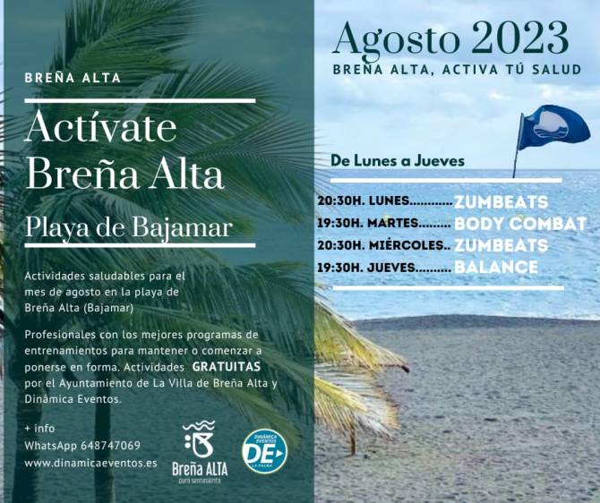 El Ayuntamiento de Breña Alta impulsa la actividad deportiva al aire libre a través del programa ‘Actívate Breña Alta’, una iniciativa gratuita que convierte la Playa de Bajamar en un gimnasio al aire libre. Esta propuesta, se desarrollará durante el mes de agosto y tiene como objetivo el fomento del deporte y la vida saludable entre la población.