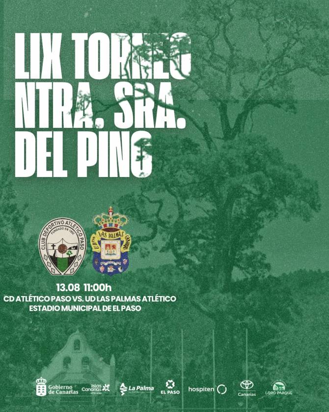 Este domingo 13 de agosto a las 11:00 horas, el Estadio Municipal de El Paso acoge la LIX edición del Torneo de Nuestra Señora del Pino, que disputarán el Club Deportivo Atlético Paso y la Unión Deportiva Las Palmas Atlético.