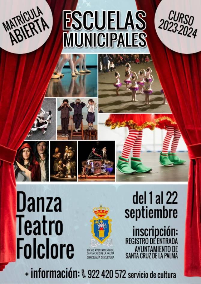 La concejalía de Cultura del Ayuntamiento de Santa Cruz de La Palma abre el plazo de inscripción para participar en las Escuelas Municipales de Teatro, Folclore y Danza durante el próximo curso 2023/2024.