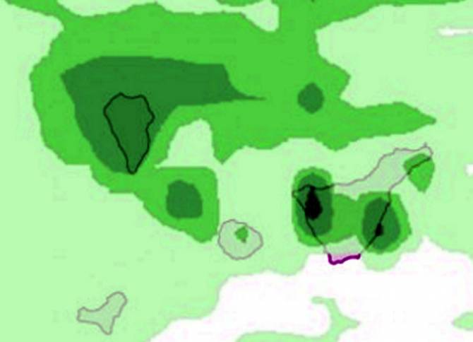 Pero lo ha hecho de forma muy distinta en las vertientes de La Palma. Mientras en Garafía ya se han recogido 43,2 litros por metro cuadrado en las últimas horas, en las zonas costeras de Santa Cruz de La Palma, Las Breñas, Mazo o Puntallana, apenas se ha recogido entre 0,8 y 5 litros por metro cuadrado.