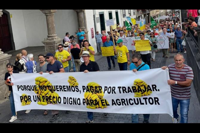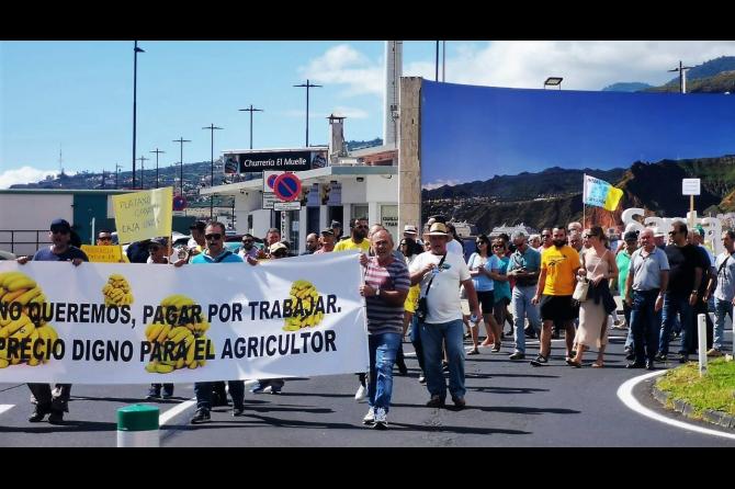 Las calles de Santa Cruz de La palma han acogido este sábado la manifestación convocada por la Plataforma por un Precio Justo y Auténtico del Plátano contra los bajos ingresos que reciben las familias productoras de esta fruta (inferiores al 10% del precio final de venta al consumidor) y los altos costes de producción, debido al encarecimiento del agua, los abonos, los combustibles y otros insumos necesarios.