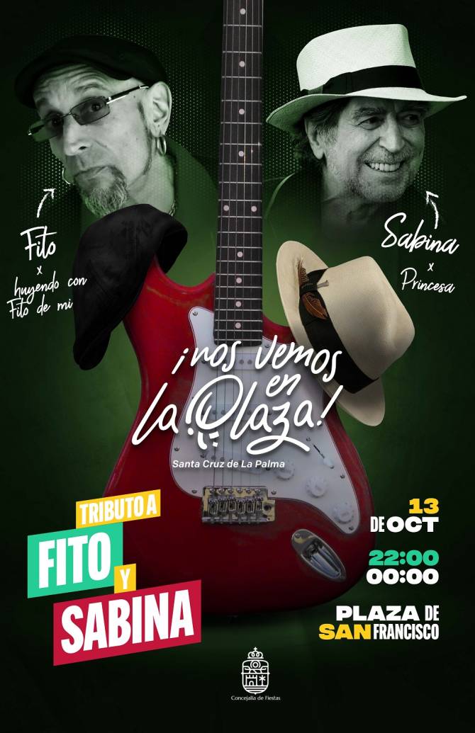 La programación de la iniciativa de ocio musical 'Nos vemos en la plaza', impulsado por la concejalía de Fiestas del Ayuntamiento de Santa Cruz de La Palma que dirige Raico Arrocha, vuelve este mes de octubre con una segunda cita. En esta ocasión, con un tributo a los artistas españoles Joaquín Sabina y Fito, del grupo musical "Fito & Fitipaldis".