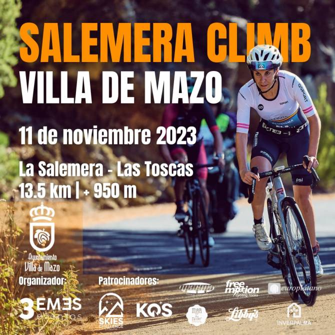 El Ayuntamiento de Villa de Mazo, a través de la Concejalía de Deportes, organiza la primera edición de la prueba deportiva ciclista 'Salemera Clim' que se celebrará el sábado, 11 de noviembre, a partir de las 11:00 horas y recorrerá el municipio.