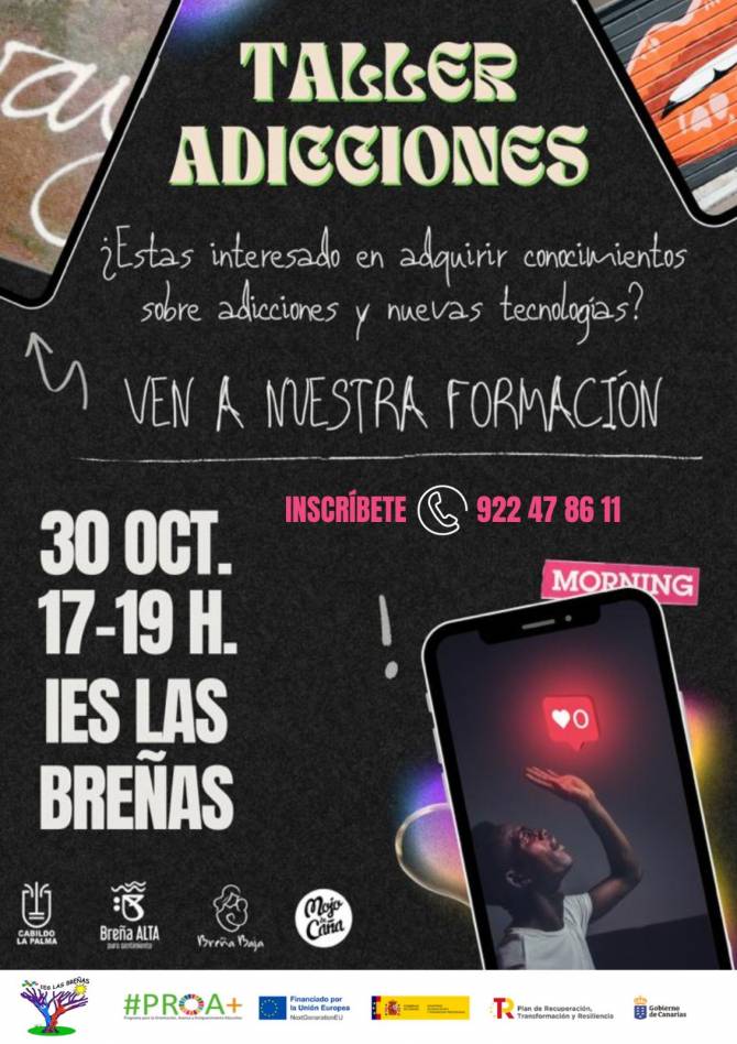 En esta ocasión, el lunes 30 de octubre, de 17 a 19 h en el propio centro, bajo el paraguas de la Asociación Mojo de Caña y Proyecto Hombre se impartirá un taller cuya temática es Adicciones y Nuevas Tecnologías.
