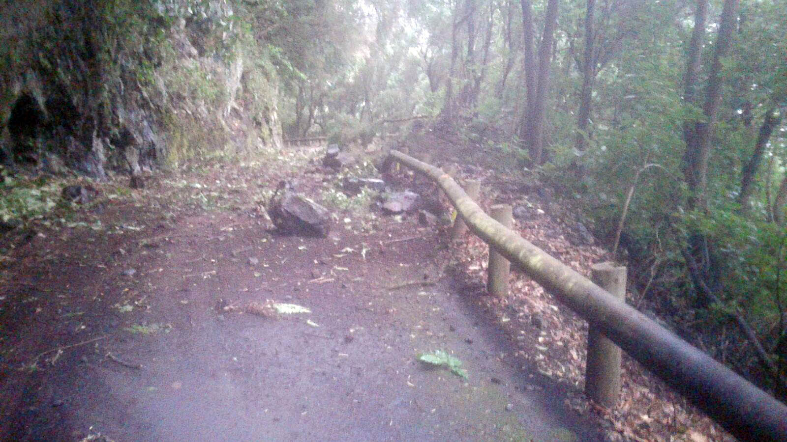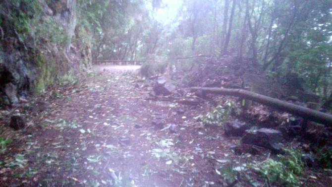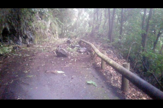 La carretera LP-109 Las Mimbreras que transcurre entre los municipios de Barlovento y Villa de Garafía ha sufrido desprendimientos con motivo de las intensas lluvias que están afectando a la Isla.