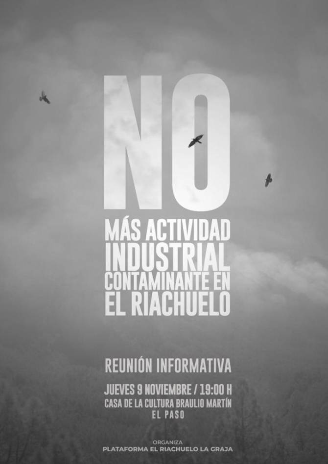 La Plataforma El Riachuelo La Graja organiza una reunión informativa para el próximo jueves 9 de noviembre, a las 19.00 horas, en la Casa de la cultura "Braulio Martín" de El Paso