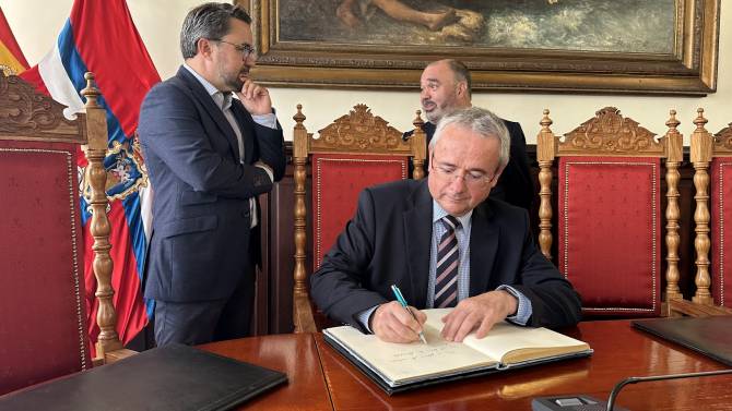 Por su parte, el embajador de este país báltico aprovechó la ocasión para firmar en el libro de visitas y personas ilustres del Ayuntamiento, mostrando su interés por asentar el contacto y el fomento de relaciones económicas y culturales bilaterales.
