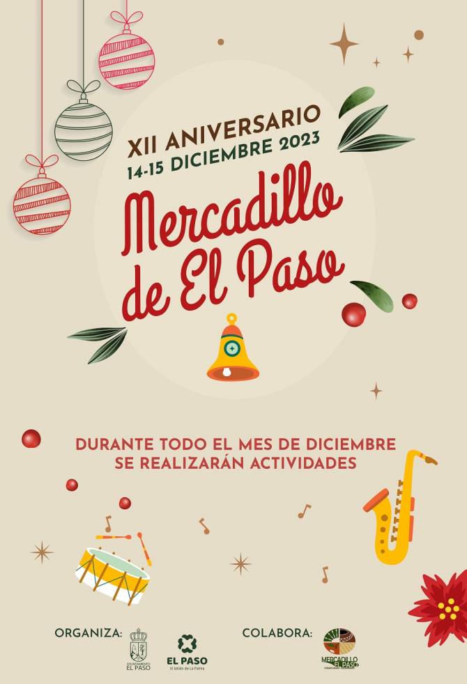 En el programa de actos destaca la realización de diferentes talleres de temática navideña dirigidos por diferentes artesanos de la isla, como el taller de centros de Navidad de #LidiaFlorista de Garden Center El Paso; Manualidades a cargo de Mar Rodríguez o Andrea Trigos; Cestería con Beatriz Fernández o Repostería Infantil con 'Aquí si Hay'. Toda aquella persona interesada en participar en dichos talleres debe inscribirse previamente a través del teléfono 922 48 51 30 ext. 221 o acudiendo a la Oficina de Mercadillo y Artesanía del Ayuntamiento de El Paso de 09:00 a 13:00 horas.