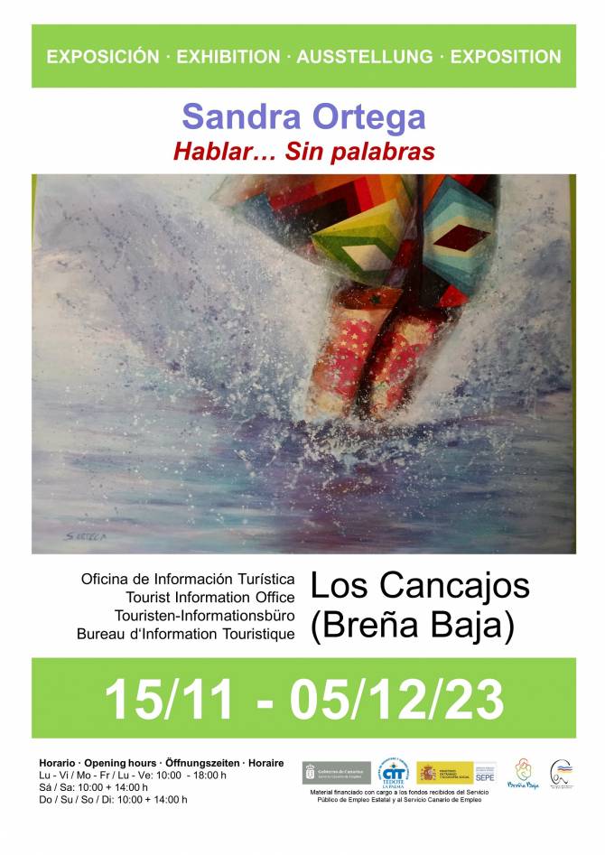 Del 15 de noviembre al 5 de diciembre Sandra Ortega muestra la exposición de pintura al óleo “Hablar…. Sin palabras” en la Oficina de Turismo de Los Cancajos con los horarios de apertura de la oficina. Colabora Ayuntamiento de Breña Baja, CIT Tedote, entre otras entidades