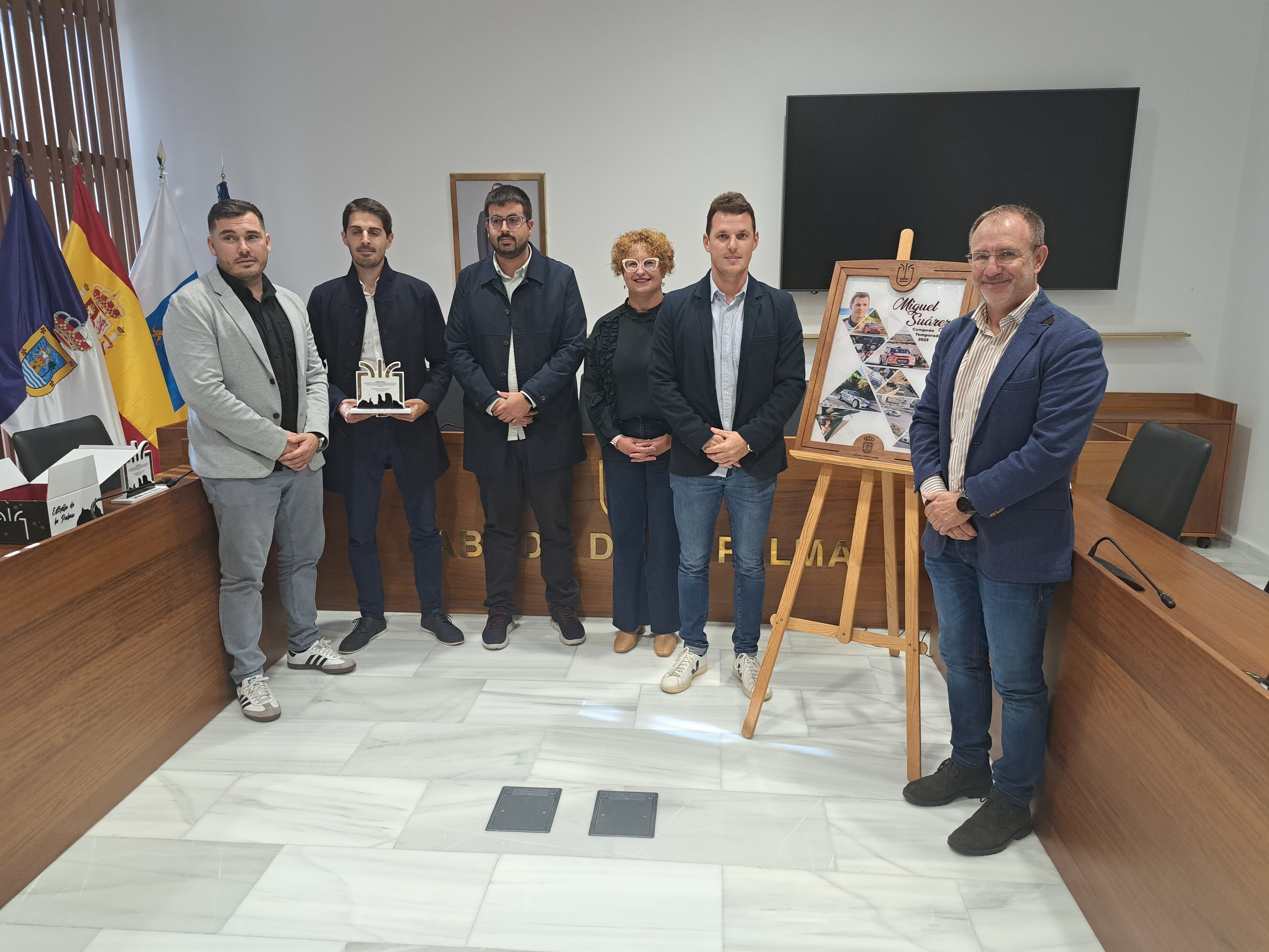 El presidente del Cabildo de La Palma, Sergio Rodríguez, acompañado por los portavoces de los grupos políticos con representación en la Institución y por el consejero de Deportes, Yurgen Hernández, realizó un reconocimiento al piloto palmero Miguel Suárez, acompañado por su copiloto Eduardo González, y que se proclamaron campeones de Canarias de Rallyes recientemente.