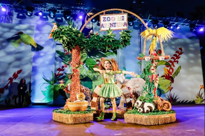 La pequeña inicia su reinado junto a su corte de honor, integrada por dos damas. La primera de ellas Sheila Hernández Ruíz, con la creación Soñando con mi aventura, de las diseñadoras Cande y Yaiza e inspirada en un zoo en el que no faltaban el colorido de sus exóticos animales y como segunda dama, Gara Agueda Díaz, con la fantasía Gara, princesa del agua, Diosa del Aire diseñada por Ana Portocarrero y en la que destacaban dos dragones laterales de color rosa cuya cola remataba en la parte trasera y una estructura alada llena de plumas blancas, rosas y destellos plateados.