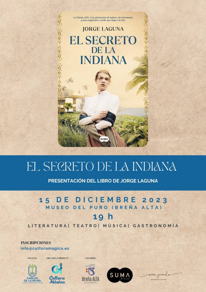 El Museo del Puro, en el municipio de Breña Baja, celebrará el próximo viernes 15 de diciembre la presentación del libro El secreto de la indiana, del periodista y guionista canario Jorge Laguna y la editorial Penguin. Una historia recreada en La Palma en 1876, que trata sobre dos hermanos y una fábrica de tabaco en la que el amor, los límites del poder, las relaciones prohibidas y la traición son las protagonistas.