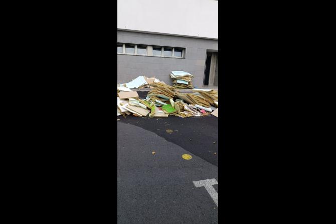 Desde el ayuntamiento de Los Llanos de Aridane nos han ayudado proporcionando samuros para contener el agua y a su personal para retirar los falsos techos e intentar arreglar la instalación eléctrica pero sabemos que no es el ayuntamiento quien tiene en su mano la solución sino la Consejería de Educación del Gobierno de Canarias que se suponía vendría el Lunes 11 para tratar de dar una solución y ahora han aplazado la visita para el Martes 12. La directora insular de educación en La Palma si que visitó el centro y vio su lamentable estado pero desde entonces (lunes día 4 de diciembre) seguimos igual, a la espera de una solución y con más de 260 familias asumiendo un gasto extra en ludotecas para poder conciliar vida laboral y familiar.