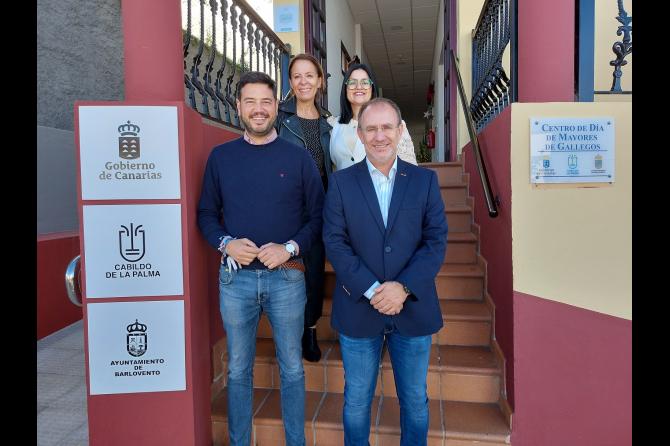 El presidente del Cabildo de La Palma, Sergio Rodríguez, y la consejera de Acción Social, Ángeles Fernández, han visitado el nuevo Centro de Día de Gallegos, ubicado en la parte alta de la Casa de la Cultura de este barrio de Barlovento, que se ha puesto en funcionamiento recientemente y que presta atención a 12 personas dependientes de la Isla. En la visita al centro también han estado el alcalde de Barlovento, Jacob Qadri, y la concejala de Servicios Sociales, Janet Díaz.
